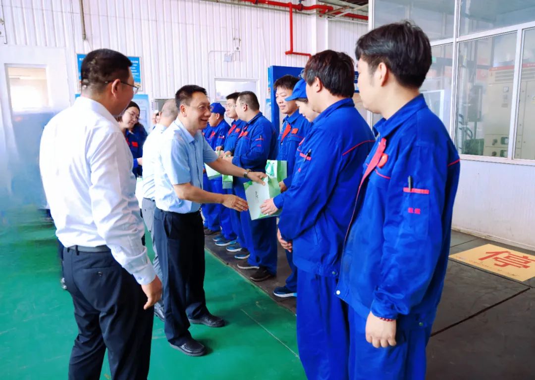 “你們現在每班工作多長時間?”“每天排班幾次?幾班倒?”“休息室里有沒有空調?”在車間里,院領導與大家深入交談,詳細詢問了當前生產作業的情況,代表院黨委向奮戰高溫的勞動者致以誠摯的敬意和深切的問候,囑咐大家一定要做好高溫天氣下的防暑降溫和勞動保護工作,科學調度、勞逸結合、注意身體。施毅要求各單位要嚴格落實安全生產和防暑降溫措施,不斷改善職工工作環境、工作條件,開展好“送清涼”慰問工作,切實保障好職工的安全和身心健康,確保廣大職工平安度夏,更好推動全年科研生產各項任務完成。