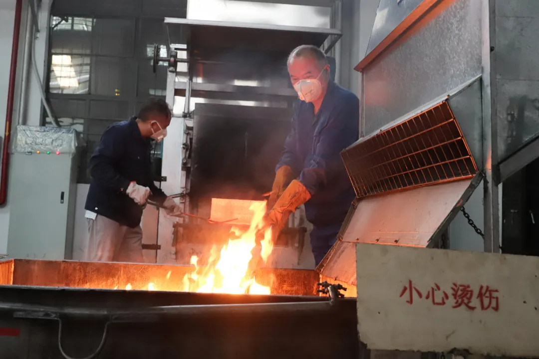 夏日炎炎,紅峰公司精密制造事業部車間一片火紅,特種工藝組組員們正對零件進行熱處理。熱處理是中間工序,時間節點緊,要求隨叫隨到,組員們接到任務馬上行動,將零件放入超過1000℃的真空淬火爐加熱后取出。現場作業溫度超過40℃,他們的臉被烤得通紅,衣服濕透。(圖文/羅曼)