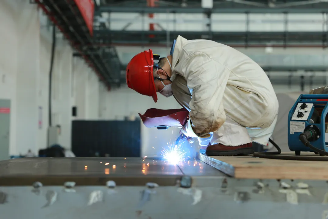 入夏以來,氣溫不斷攀升。長征公司金工車間現場,電焊工們穿著厚厚的防護服,手握焊槍搶抓工時,在光與熱的持續作用下“蒸”戰高溫。重任在肩,電焊工們直面“烤”驗,全神貫注緊盯焊接點,防止焊接變形量,嚴守施工質量關。(圖文/李玲)