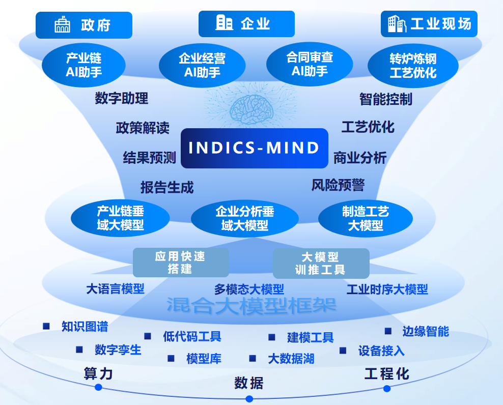 近年來,航天云網公司聚焦主責主業,大力發展戰新產業,以智能制造為主攻方向,持續布局工業大模型,升級新一代工業互聯網關鍵能力,打造了INDICS-MIND工業大模型全景產品,提供集大模型應用開發、模型服務以及大模型智能應用于一體的工業大模型解決方案。聚焦產業鏈治理、企業智慧經營、工業現場工藝優化等重點場景,不斷推出產業鏈AI助手、合同AI審查工具、銑削加工AI工藝優化、轉爐煉鋼AI終點預測等典型工業大模型應用,并已在服務政府產業鏈分析和智能工廠建設等方面開展推廣應用,致力推動AI+工業互聯網賦能企業數字化轉型升級,為實現新型工業化持續貢獻航天智慧和航天力量。
