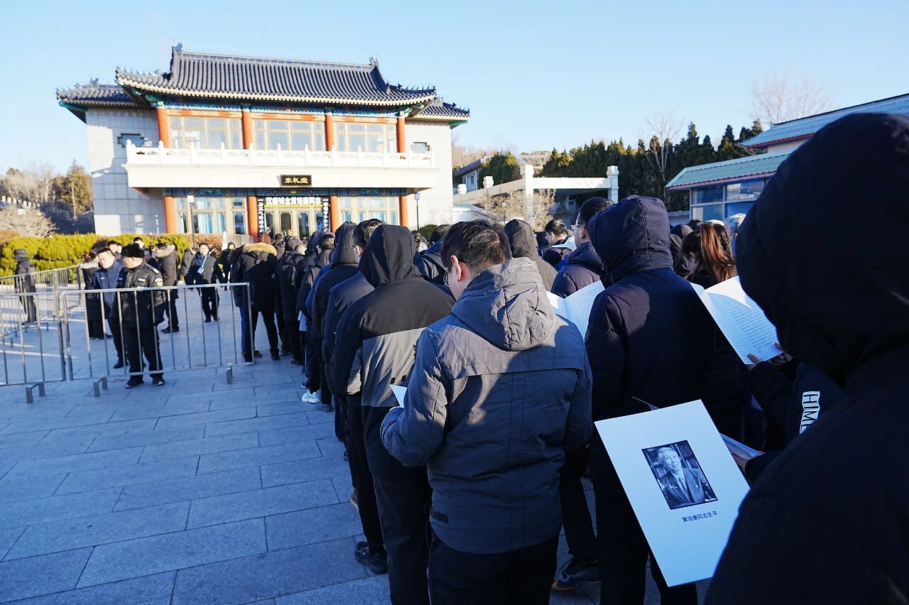 清晨,參加告別的人群早早聚集在北京市八寶山殯儀館,人們懷著無比哀痛的心情,依依不舍地送別黃培康同志。