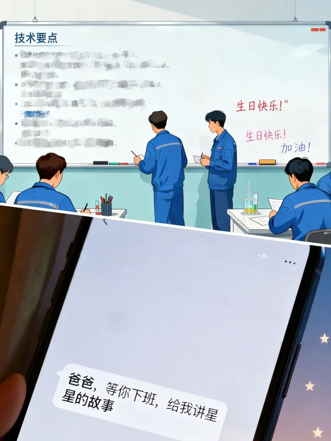 休息區的白板上,一邊是清晰的技術要點,一邊是暖心的鼓勵話語與簡潔的生日祝福。在緊張有序的工作節奏中,團隊的專業協作與人文關懷,構成了最堅實的支撐。小張的手機里,是孩子發來的語音:“爸爸,你又在給產品‘看病’嗎?等你下班,給我講星星的故事。”他笑了笑,眼神里滿是溫柔與堅定。“我們的工作,就是確保這些‘星星’能安全地飛到天上去。這份堅守,家人一直都懂。”
